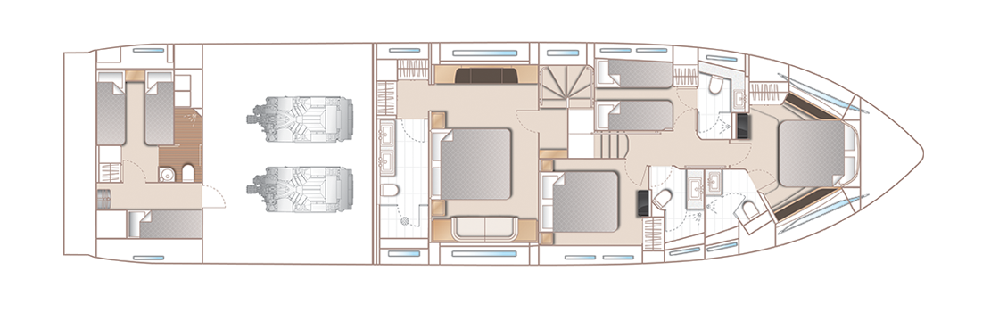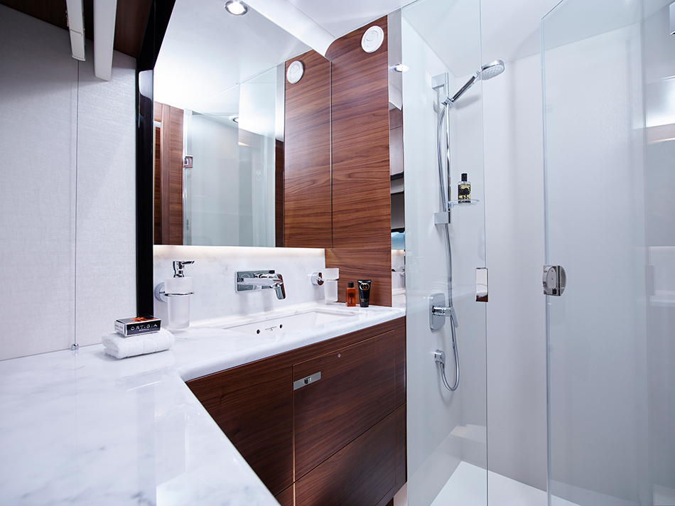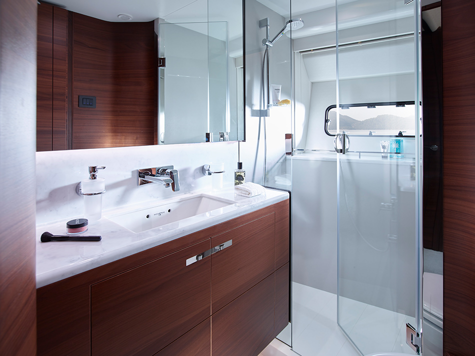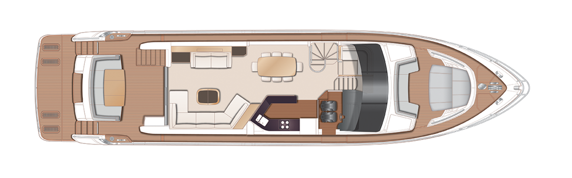 | Discover a world of motor yachting that’s ingeniously crafted to capture your imagination. Meticulously detailed surroundings finished with the finest materials, bathed in space and light, create a compelling conversation between every area of the boat. A sophisticated experience with the power to thrill. |