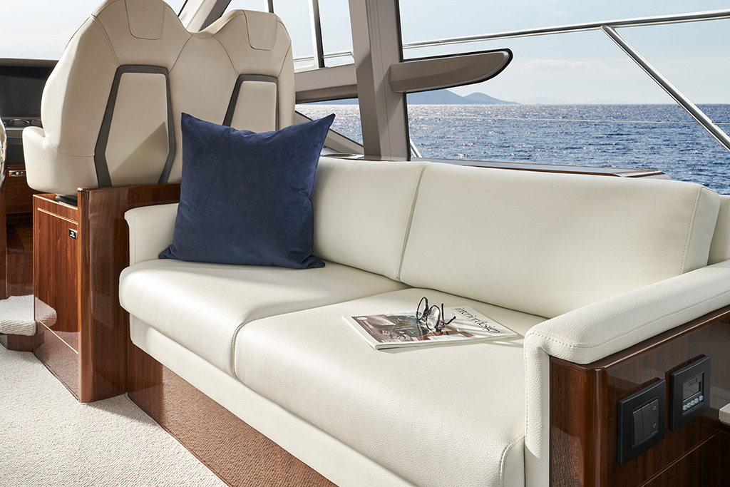 Featuring contemporary F Class styling and advanced onboard technology, the F50 combines a striking look with dynamic performance at sea. This luxury flybridge yacht offers sleek design and spacious living areas, thanks to a generous 50ft (15.7m) hull.