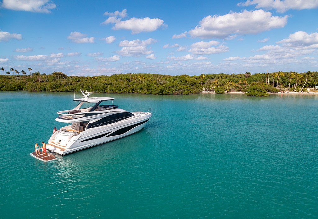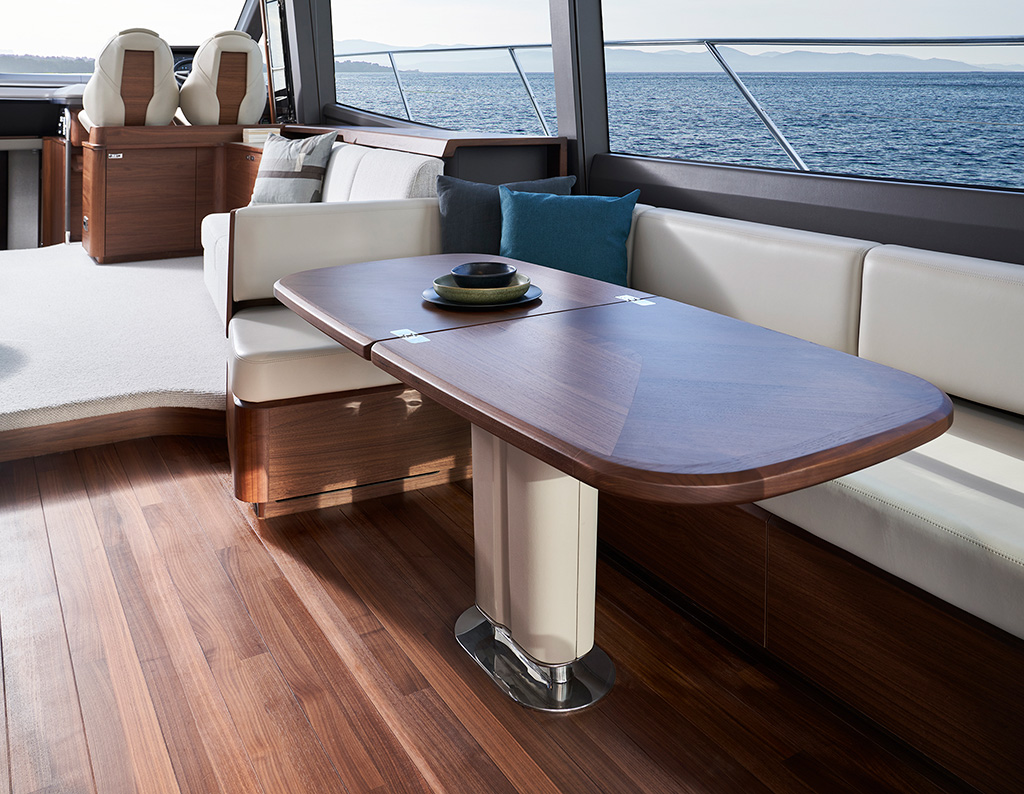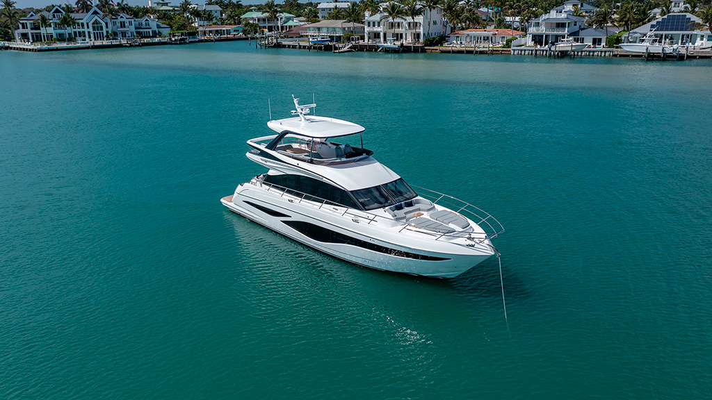 Offering generous space and a layout that makes the most of it, the F65 is the flagship of the F Class range. With a 65ft (20.3m) hull, contemporary lines and elongated windows, this luxury flybridge yacht is the perfect place to spend time with friends and family.