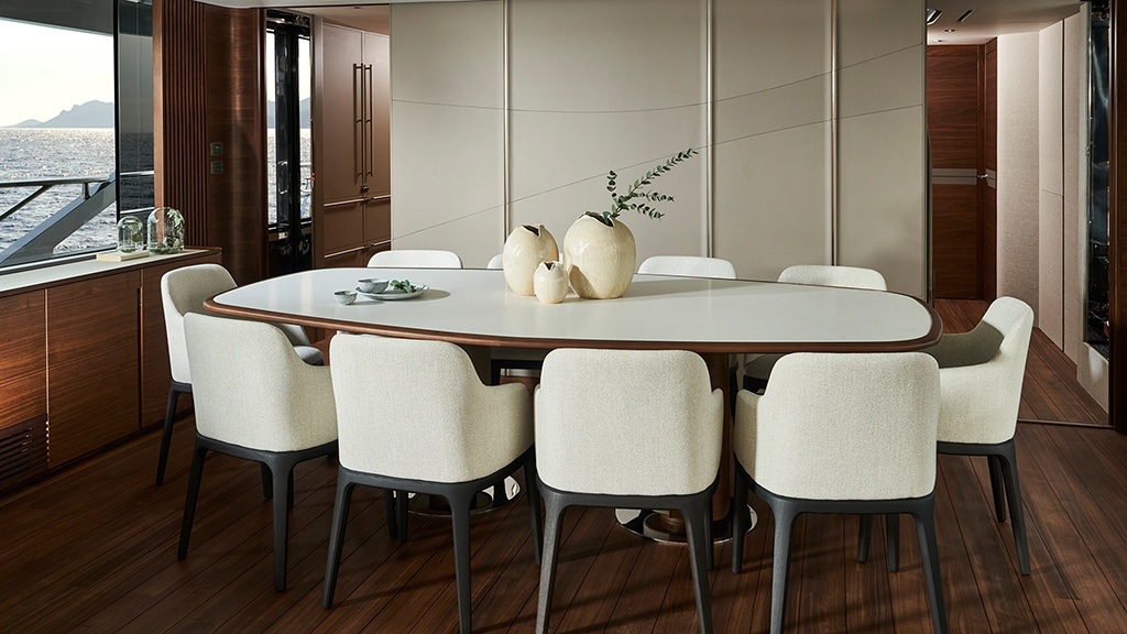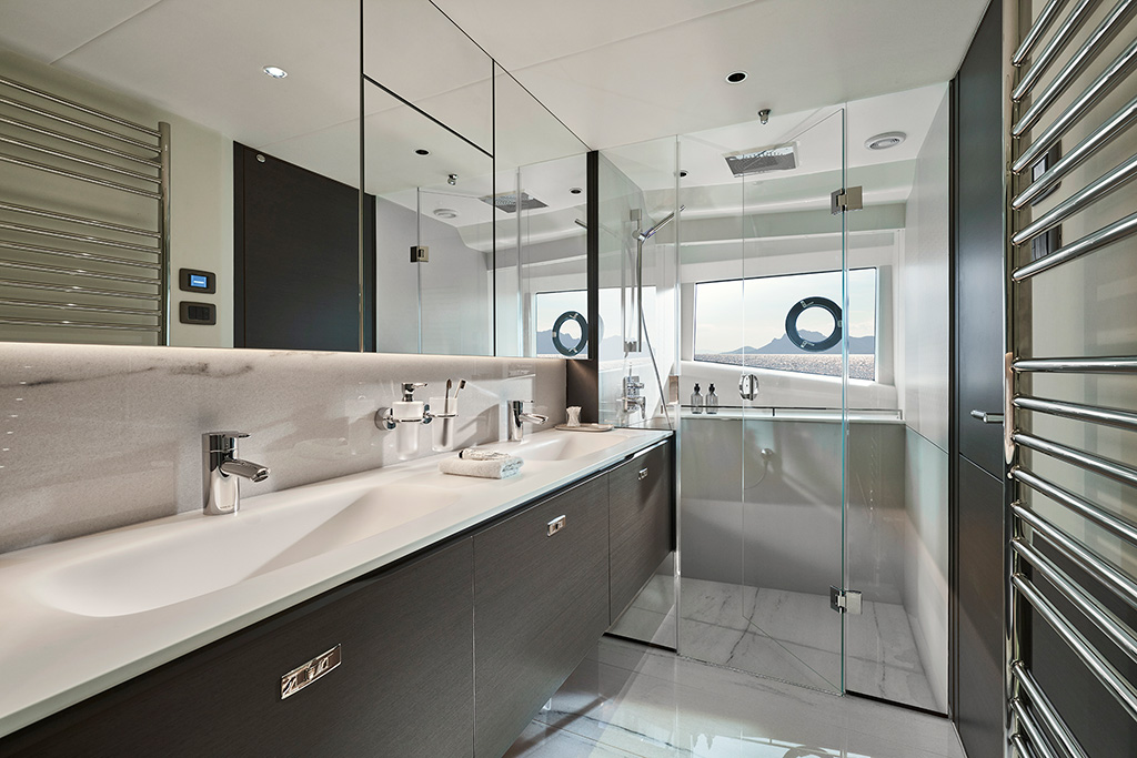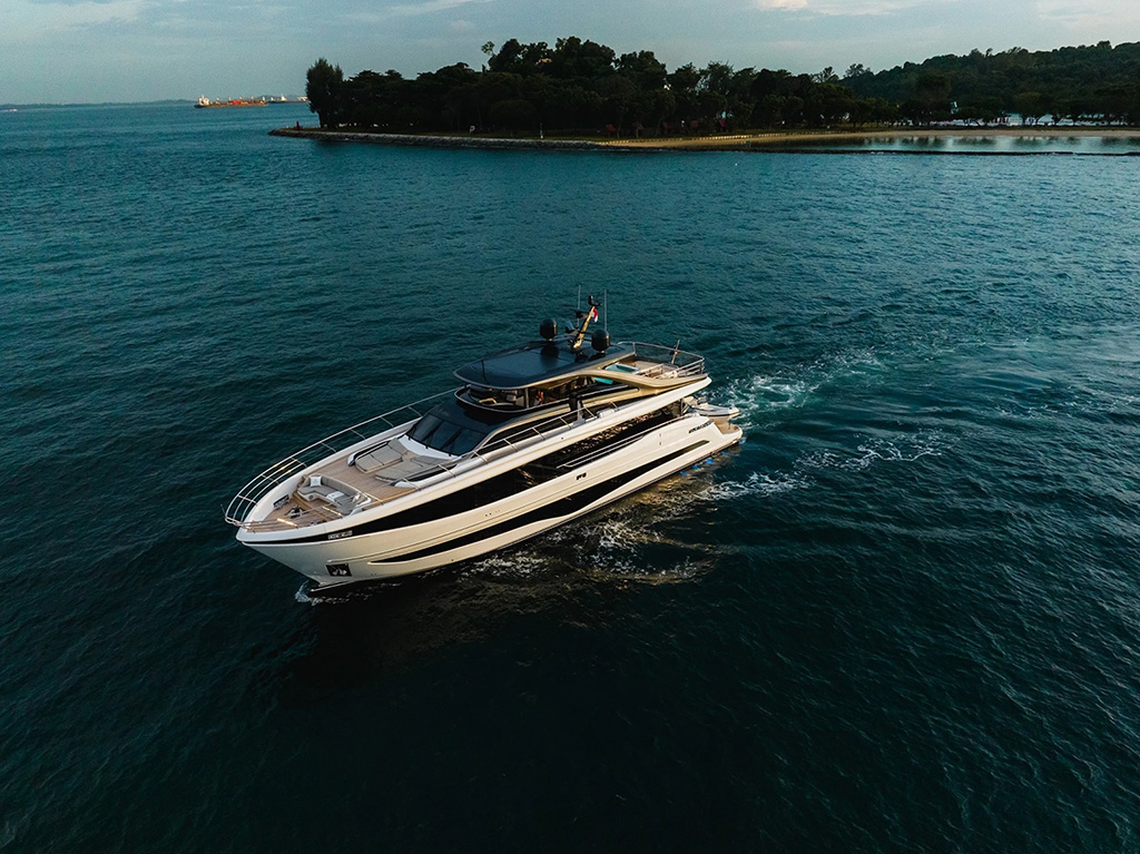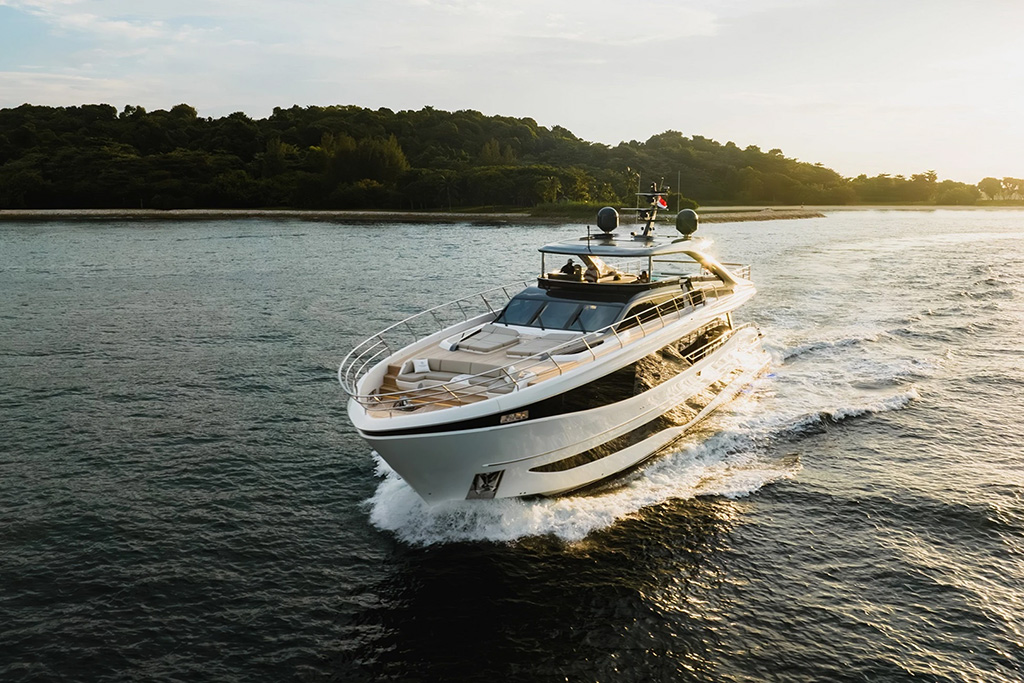 Form and function come together in the Y95 to offer extensive indoor and outdoor living spaces comparable to larger craft. The refined exterior is enhanced by full-length hull glazing, while the interior exudes elegance and tranquility.