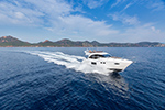 Cutting through the waves at speeds up to 35 knots or cruising at a highly economical 30 knots, the new Princess F49 promises to be sublimely enjoyable. She combines the latest IPS pod drive system with a new modified deep-V hull providing ease of handling and manoeuvrability. Her social flybridge arrangement enjoys a twin helm seat, convertible L-shaped sofa and generous seating aft. The spacious deck saloon comes alive with light from the panoramic windows and has an ingenious aft-galley layout which can be fitted with a full-height fridge/freezer. Below deck, there's a full beam owner's stateroom, a forward guest cabin with the option of scissors berths and a generous two berth starboard cabin. Quite simply, a yacht that feels like it's in a class of its own.