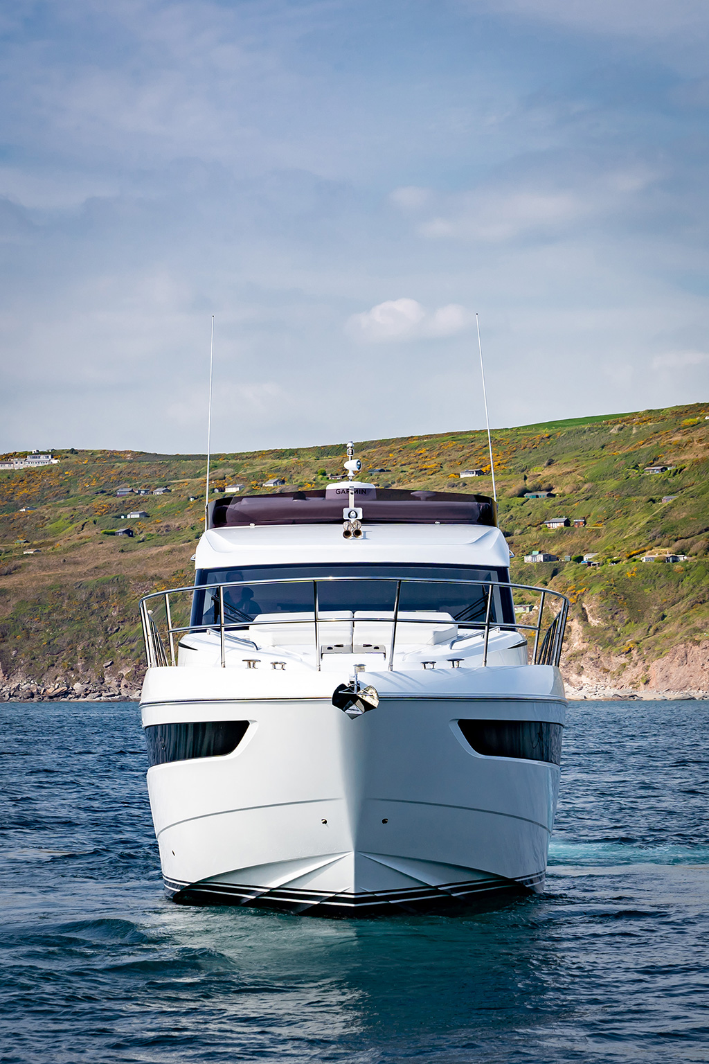 Featuring contemporary F Class styling and advanced onboard technology, the F50 combines a striking look with dynamic performance at sea. This luxury flybridge yacht offers sleek design and spacious living areas, thanks to a generous 50ft (15.7m) hull.