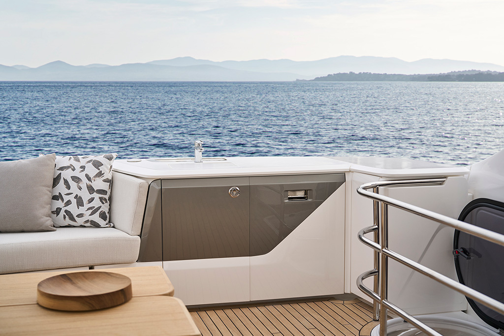 The F58 is unmistakably Princess, with elegant lines and a level of specification and standard of finish normally reserved for much larger yachts. And with a 58ft (18.2m) hull, a substantial flybridge and exceptional use of space, you can be sure of a comfortable stay at sea.