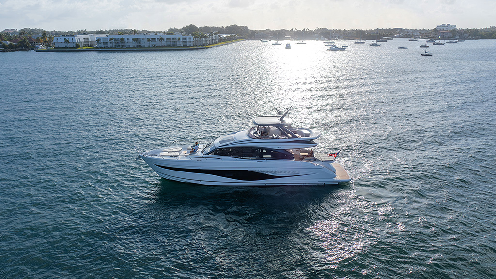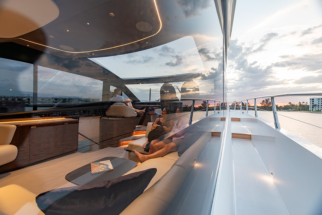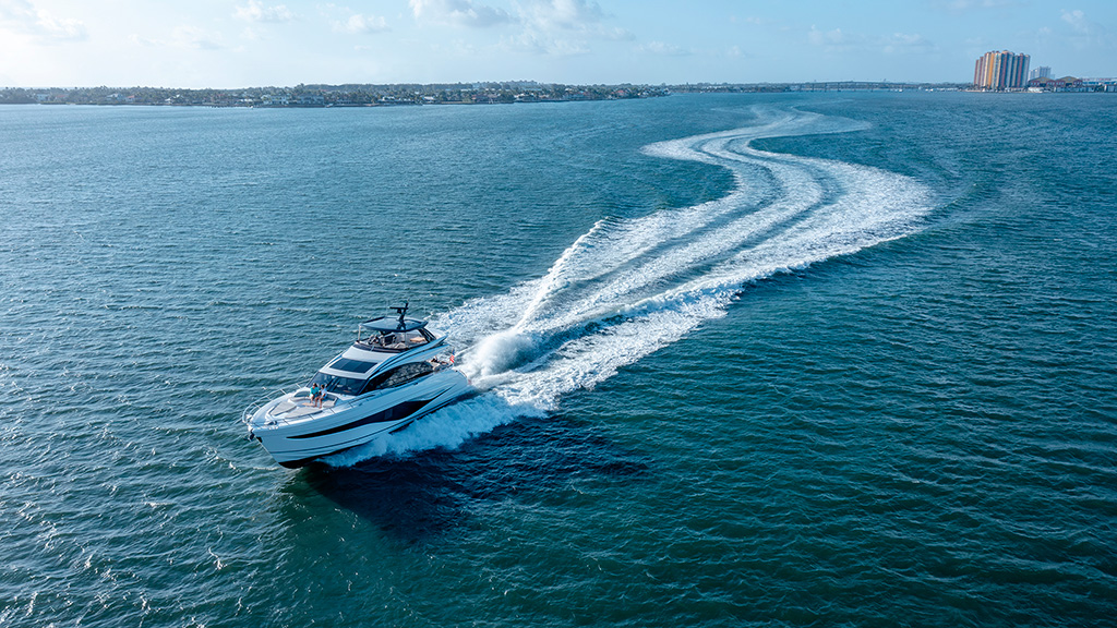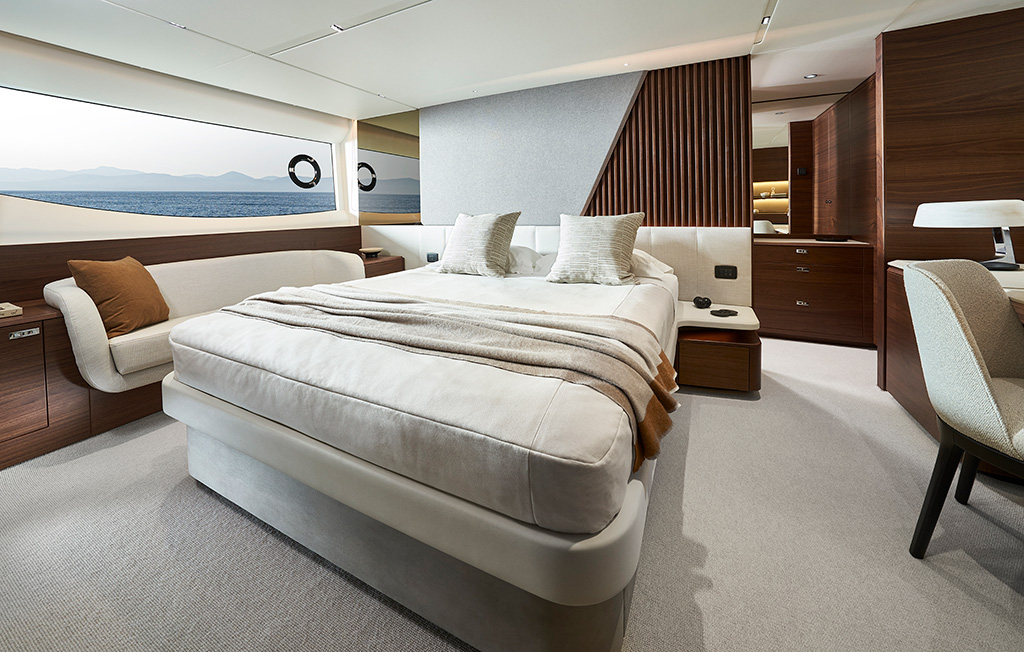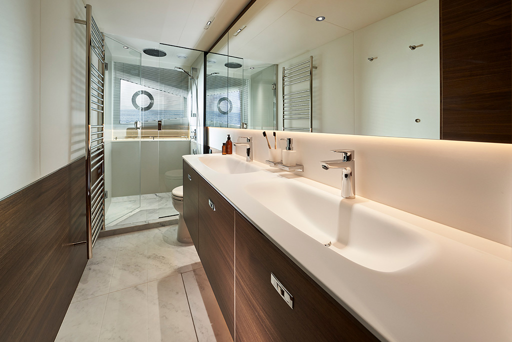 The dynamic extended styling lines synonymous with the S Class give the S72 a striking contemporary look. And the combination of twin MAN V12 engines with a resin-infused deep-V hull delivers thrilling performance and smooth handling at speeds of up to 38 knots.