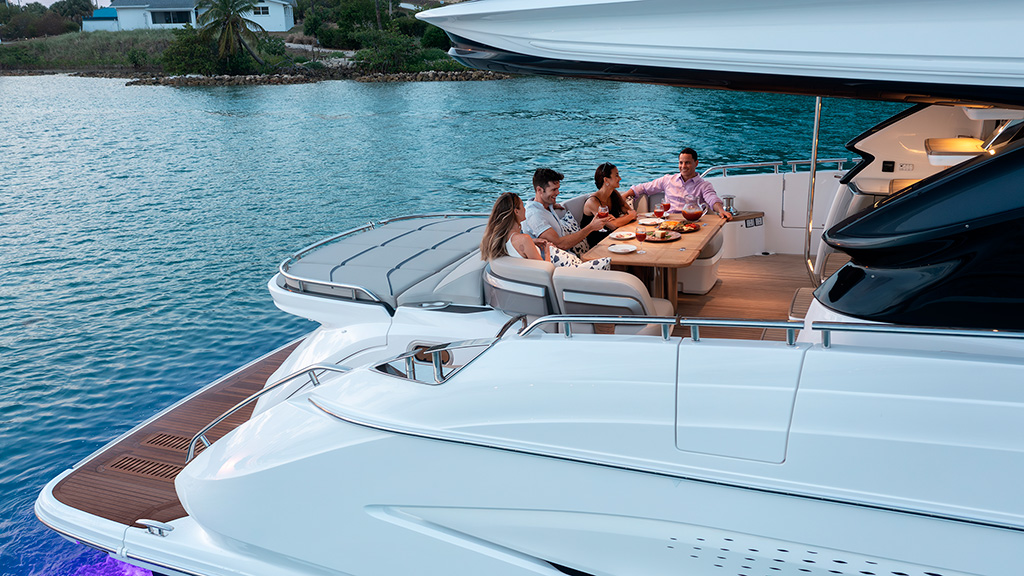 *Displacements are calculated with 50% fuel and water with liferaft but with no optional equipment fitted or other gear. Maximum speeds will vary depending on cleanliness of hull, condition of sterngear, loading of craft, water and air temperatures, sea conditions and other factors. Speed estimates are therefore given in good faith but without warranty or liability on the part of Princess Yachts Limited. Craft illustrated in this brochure may be fitted with certain optional equipment. Specifications may be changed at any time without notice or liability.