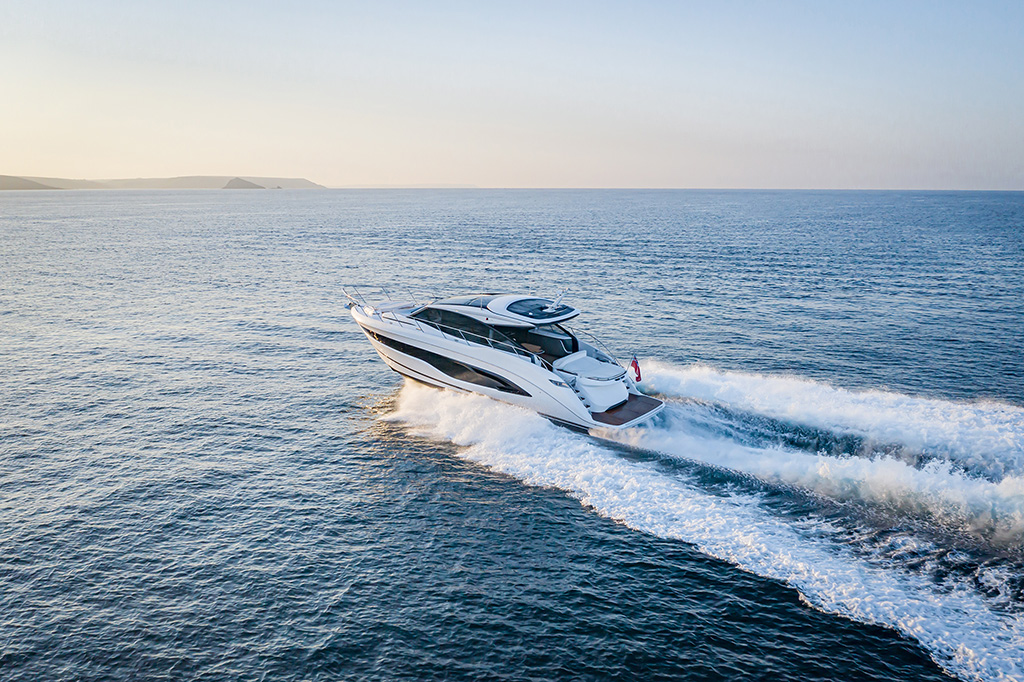 *Displacements are calculated with 50% fuel and water with liferaft but with no optional equipment fitted or other gear. Maximum speeds will vary depending on cleanliness of hull, condition of sterngear, loading of craft, water and air temperatures, sea conditions and other factors. Speed estimates are therefore given in good faith but without warranty or liability on the part of Princess Yachts Limited. Craft illustrated in this brochure may be fitted with certain optional equipment. Specifications may be changed at any time without notice or liability.